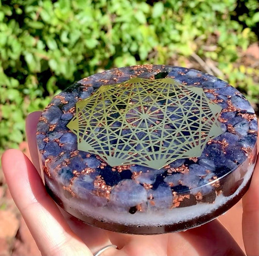 Violet Flame Maltese Cross Orgonite Altar Plate 4"